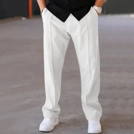 Spring Summer New Men’s Casual Pants Thin Mulberry Silk Soft Business Casual Trousers Slim Straight Elastic Suit Pants Male