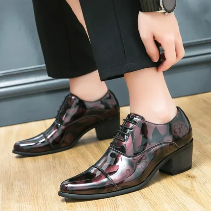 Men’s High Heel Shoe Pointed Leather Dress Shoes for Men Fashion Height Increasing Party Prom Wedding Oxfords Zapatos De Hombre