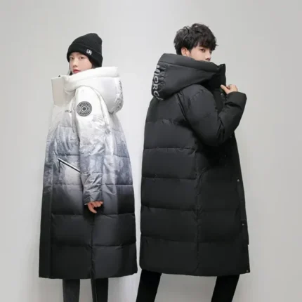 Fashion Long Coat men Warm Parkas Men’s Winter Hooded Down Jacket High-end Black Gold Glossy Ultra Light White Duck Down Coat