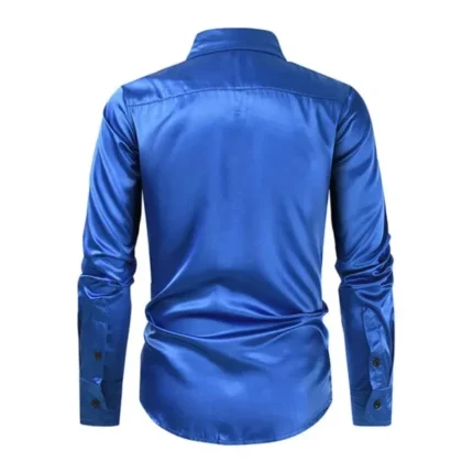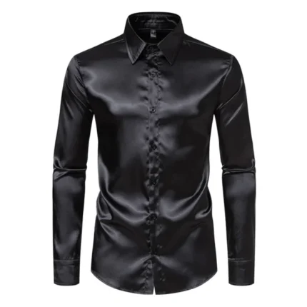 Elegant Satin Silk Men’s Dress Shirt Slim Fit Long Sleeve Cocktail Party Luxury Button Down Casual Suit Shirt