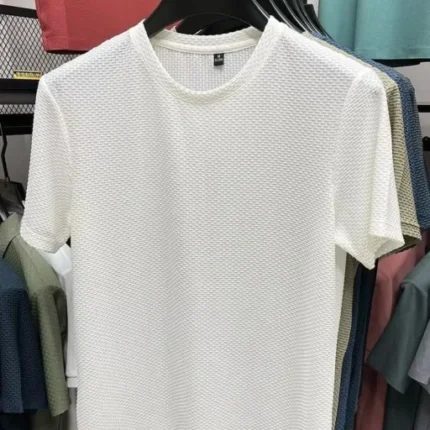 MINISO Bamboo Mesh Ice Silk T-shirt Men’s Short sleeved Round Neck New T-sleeved Men’s Bottom Shirt Summer Solid Color Men’s Top
