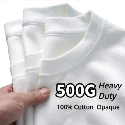 Black White GSM 500g Heavy-duty Pure Cotton T-shirt Thickened Threaded Round Neck Short Sleeves Three Needle Half Sleeve Tees