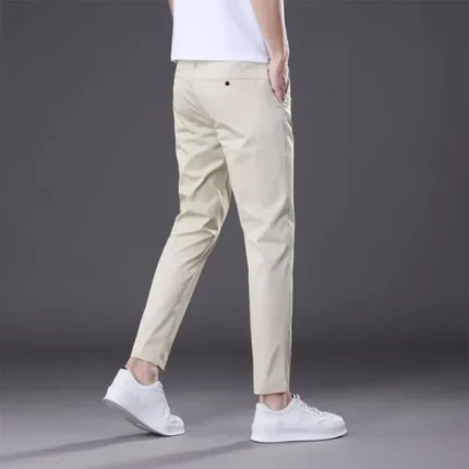 Spring Summer New Men’s Casual Pants Thin Mulberry Silk Soft Business Casual Trousers Slim Straight Elastic Suit Pants Male