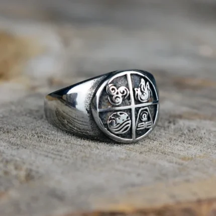 Stainless Steel Rings Avatar The Last Airbender Air Fire Earth Water Elements Rings Occult Amulet Gothic Jewelry