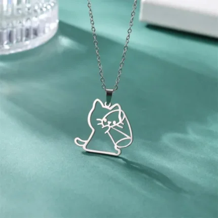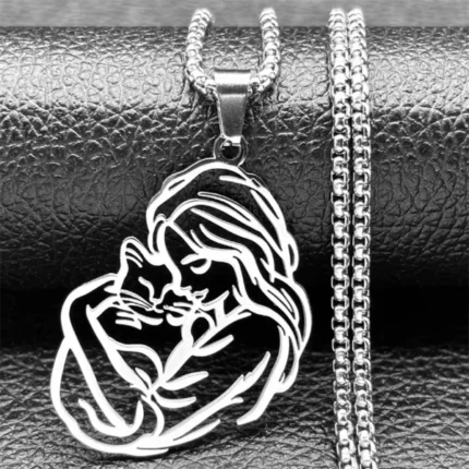 Women Hug Cat Pendant Necklace For Men Stainless Steel Gold Silver Color Hollow Kitty Female Love Pet Peace Chain Jewelry
