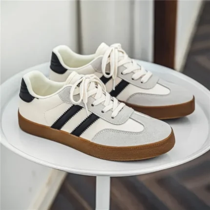 Maden Retro Patchwork German Trainers Shoes for Unisex Summer Classic White Low Top Sports Tennis Shoes Outdoor Lace-Up Sneakers