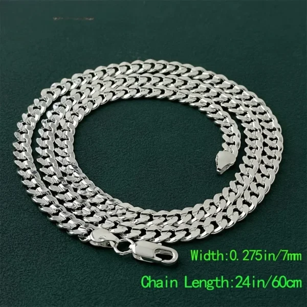 925 Sterling Silver 7mm Cuban Chain Necklace noble charms for women men lady Concave Sideways Design Wedding Jewelry