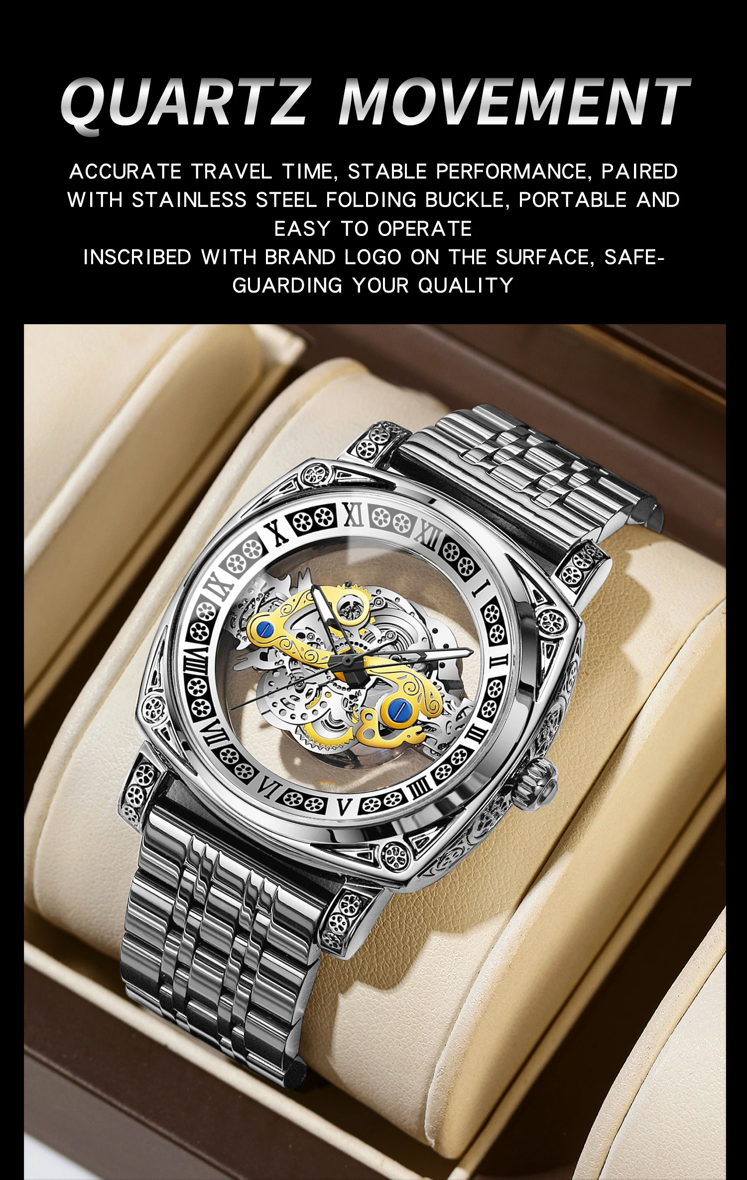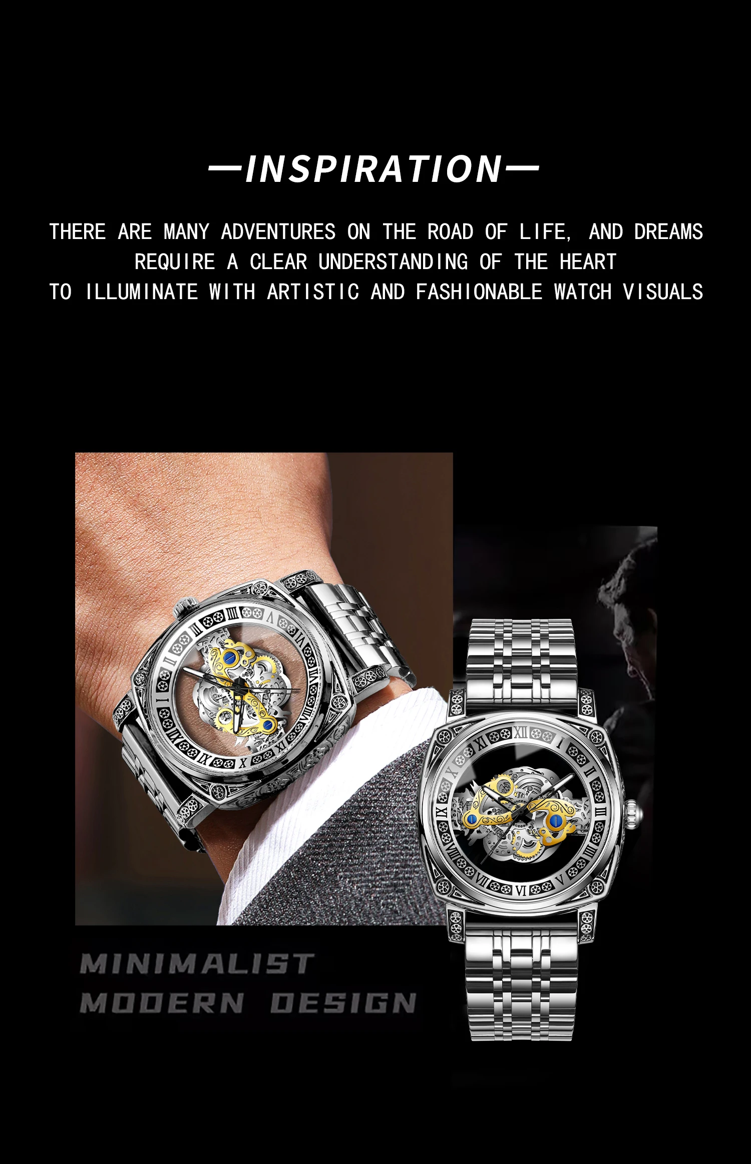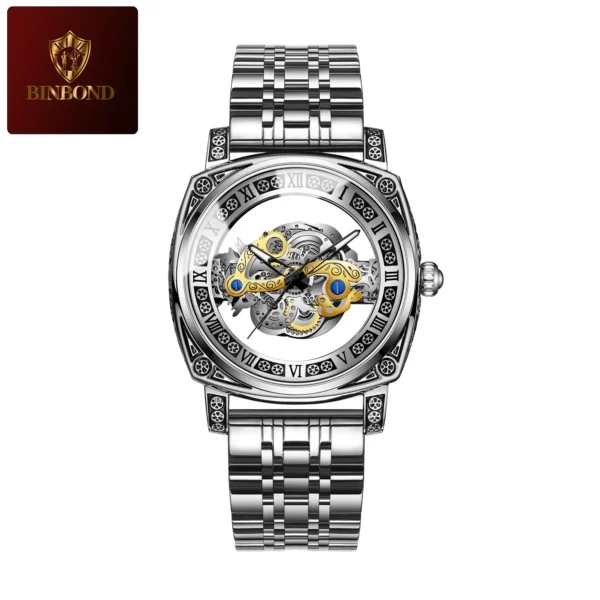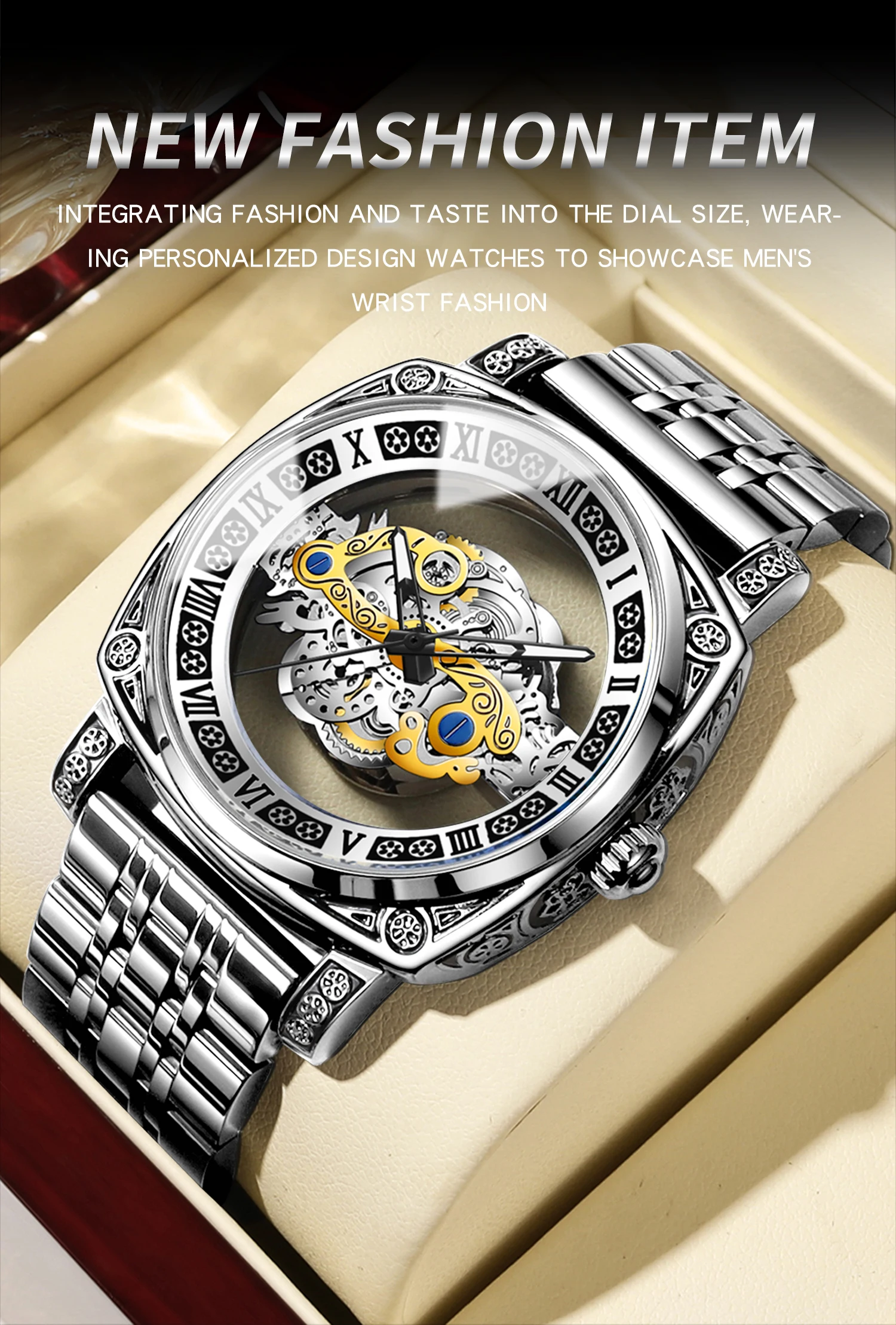 BINBOND New 432 Men’s Quartz Watch Tourbillon Men’s Fully Automatic Luminous Hollow Watch Fashion Non Mechanical Watch