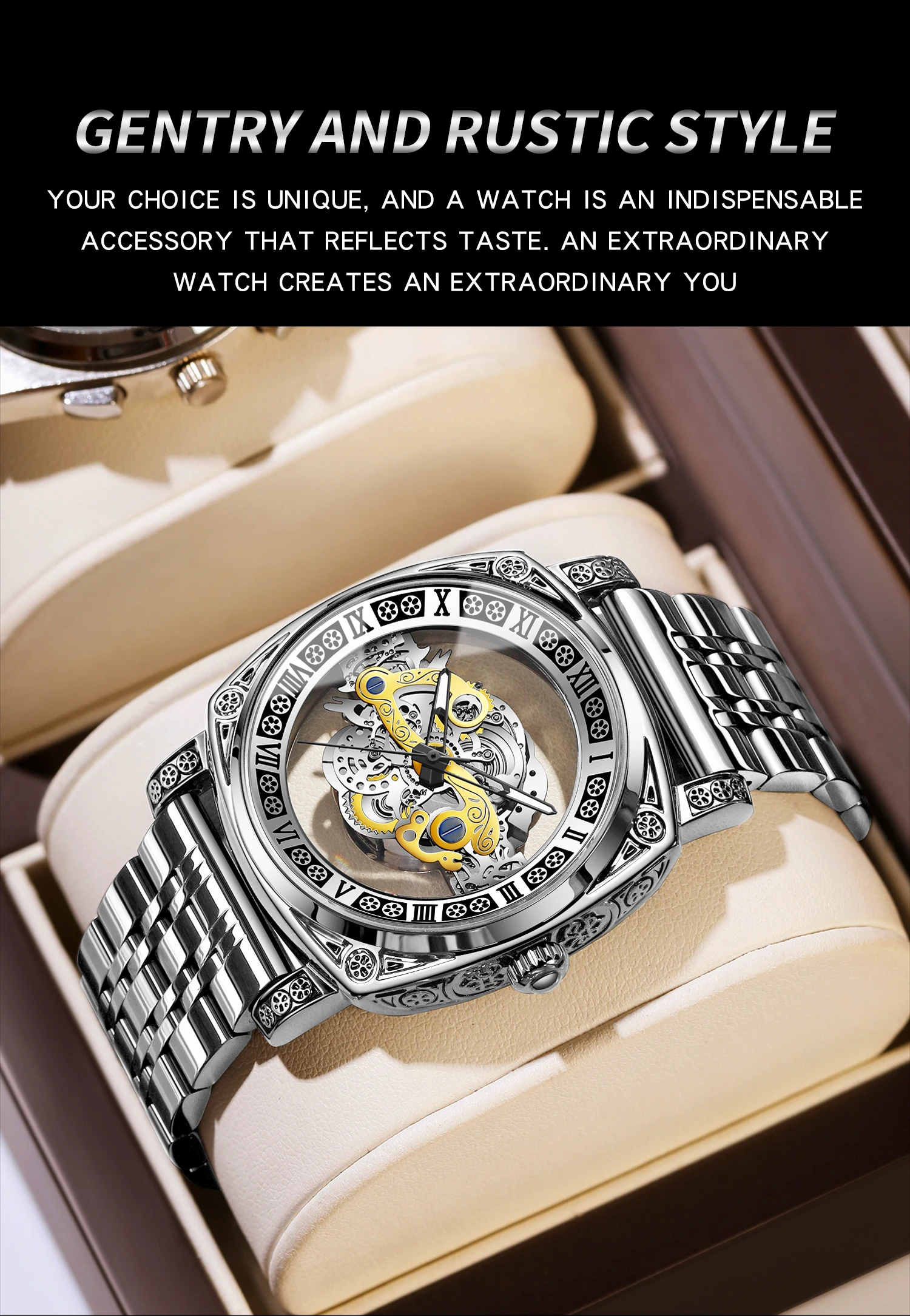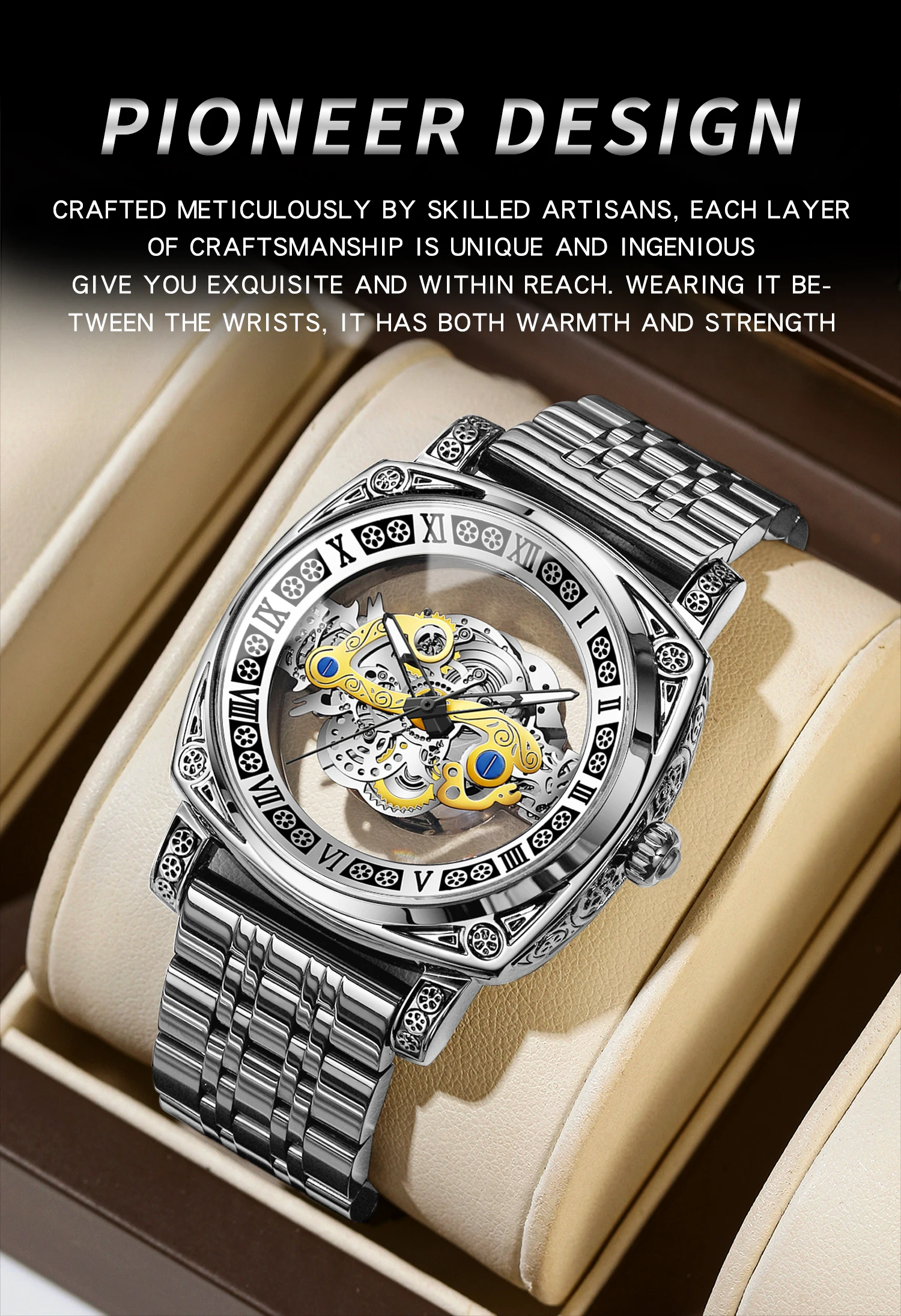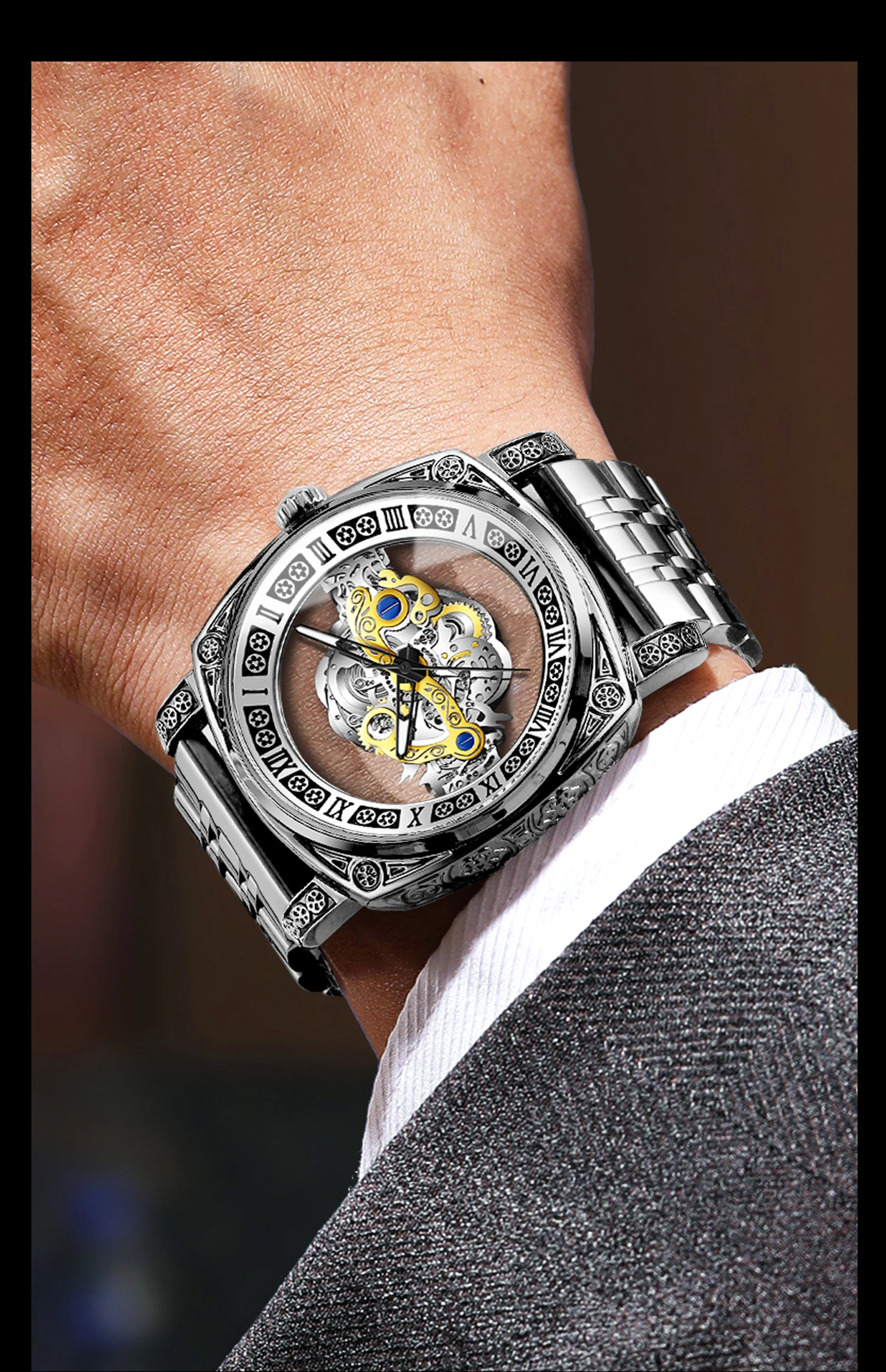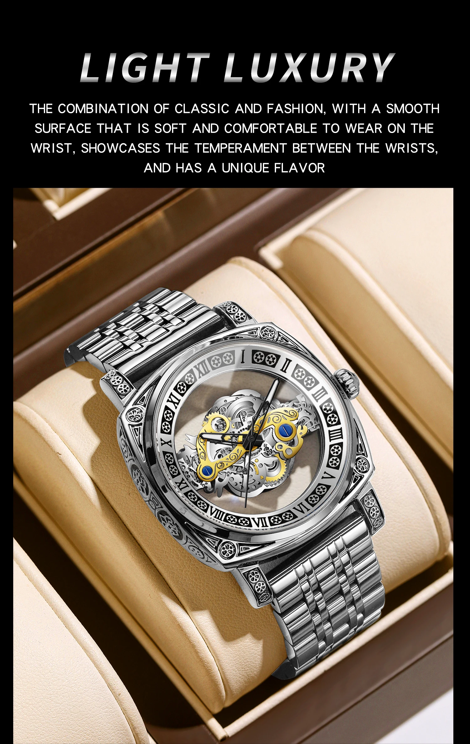 BINBOND New 432 Men’s Quartz Watch Tourbillon Men’s Fully Automatic Luminous Hollow Watch Fashion Non Mechanical Watch