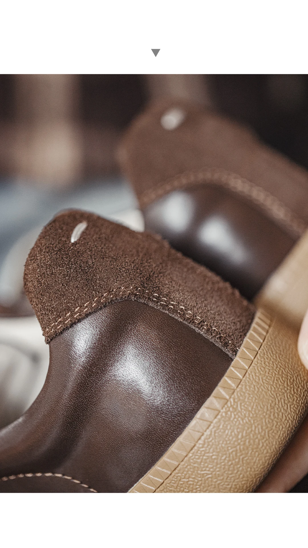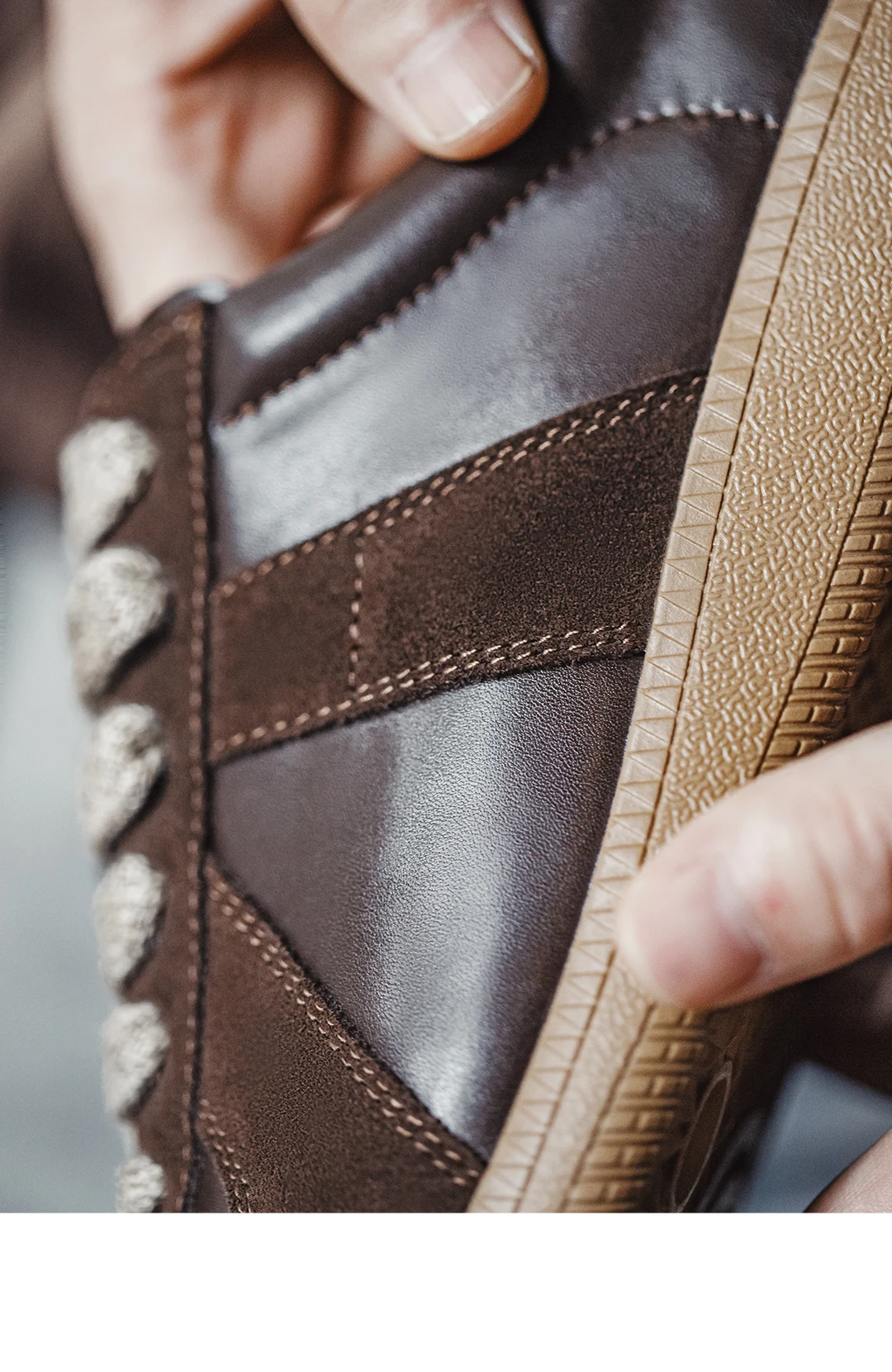 2.Patchwork design (toe/upper/heel in suede) – adds dimensional texture