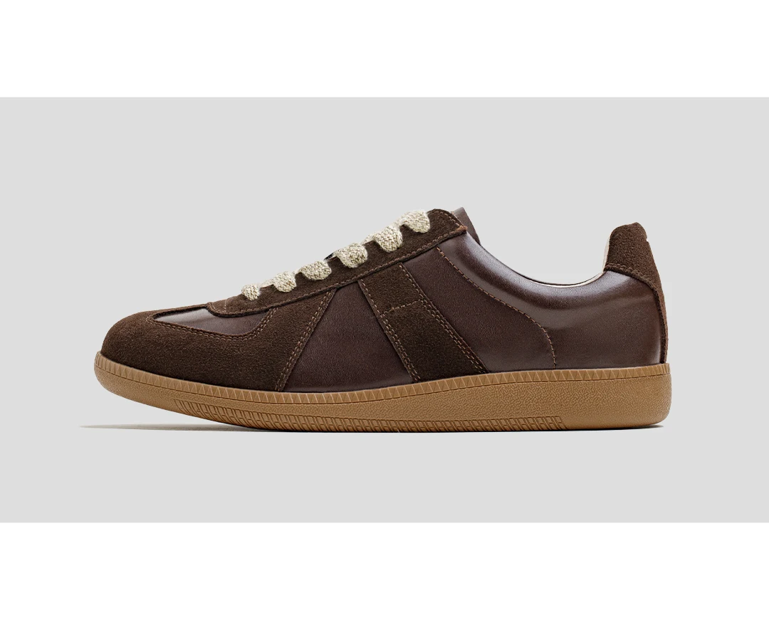 Maden Classic Brown Spliced German Trainer Shoes Flat Low-top Sneakers for Men’s Spring and Autumn Casual Lace-up Sporty Shoes