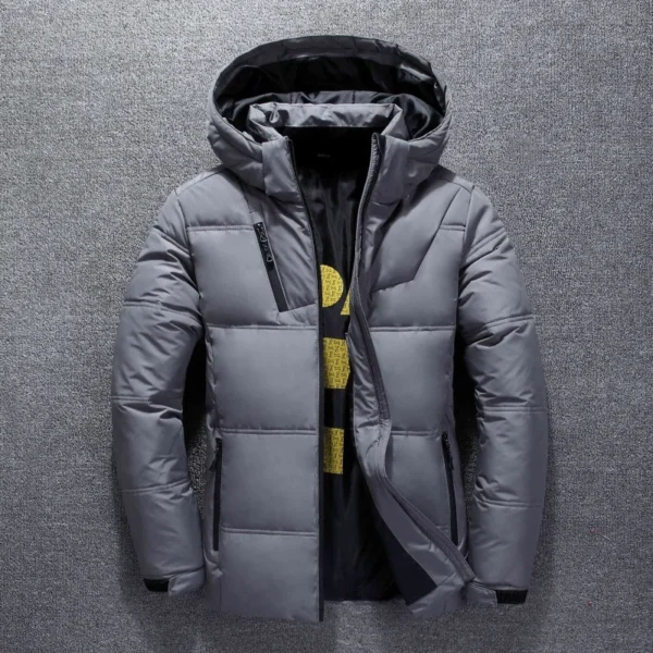 Men’s Coat Windproof White Duck Down Jacket Men Winter Removable Cap Parkas Solid Color Outdoor Casual Hooded Overcoat Clothes