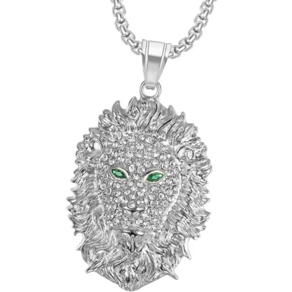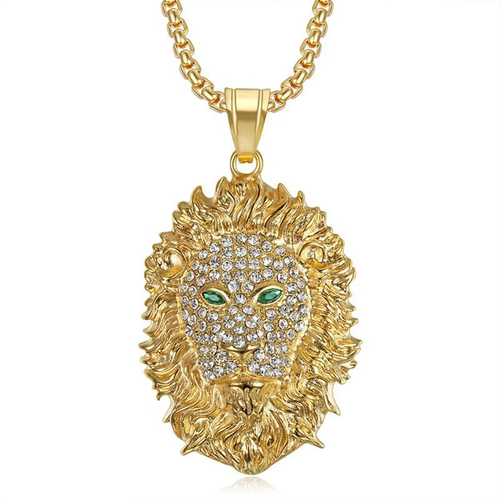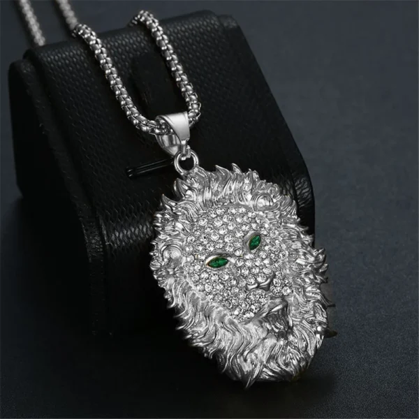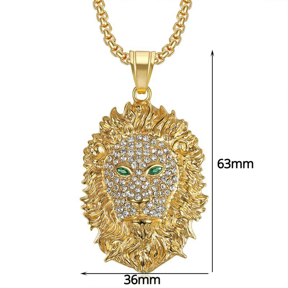 Mens Lion Head Pendant Necklace Shiny CZ Iced Out Chain For Men Silver Color Stainless Steel Animal Necklaces Male Bling Jewelry