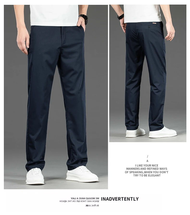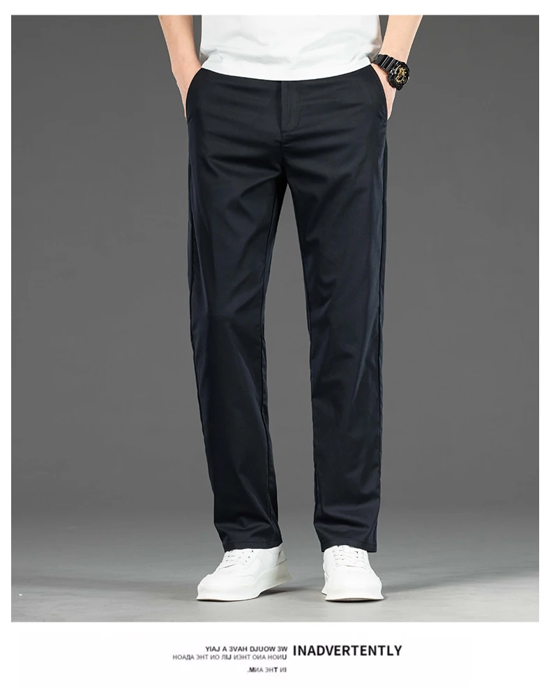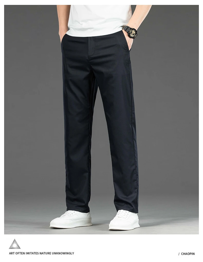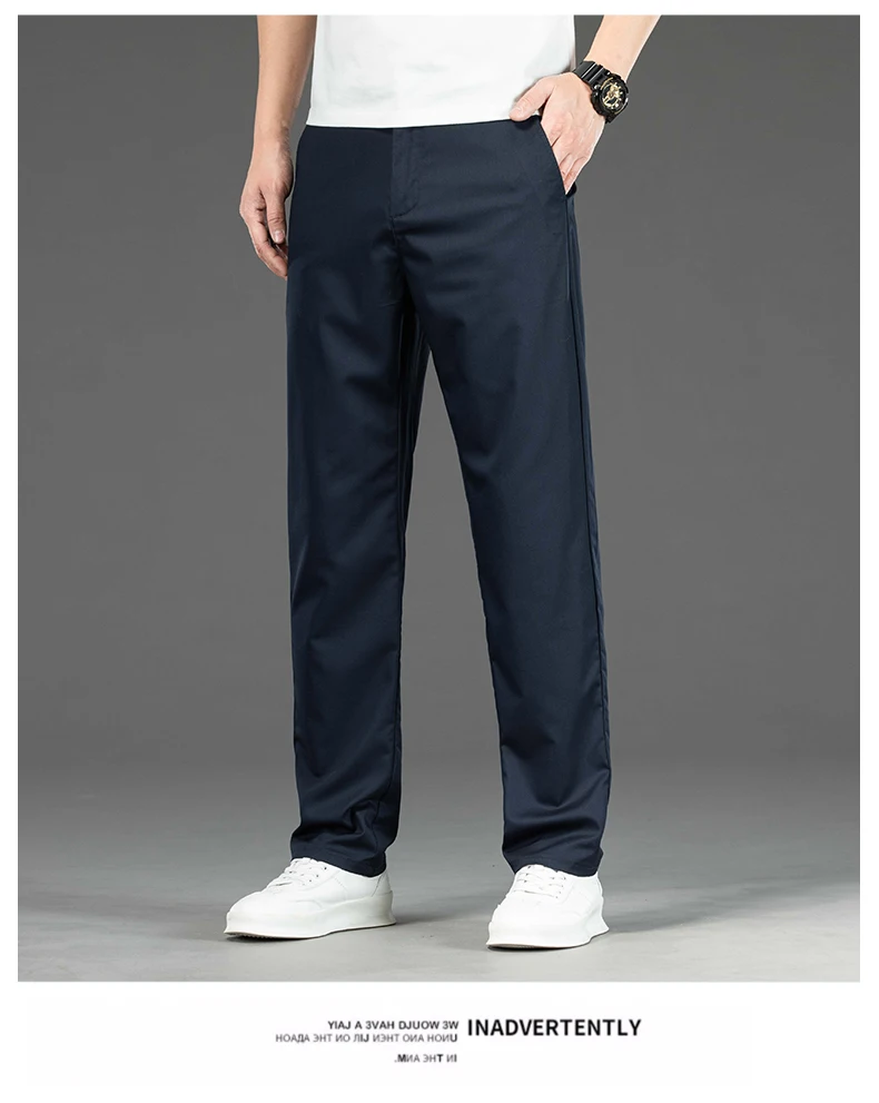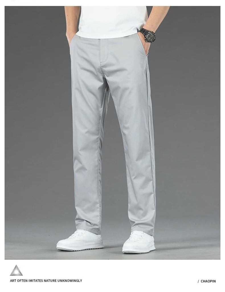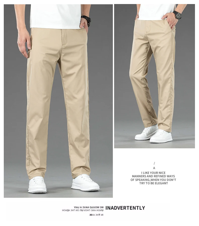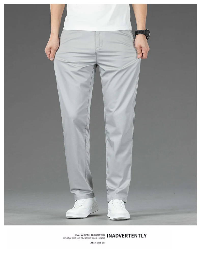 Spring Summer New Men’s Casual Pants Thin Mulberry Silk Soft Business Casual Trousers Slim Straight Elastic Suit Pants Male