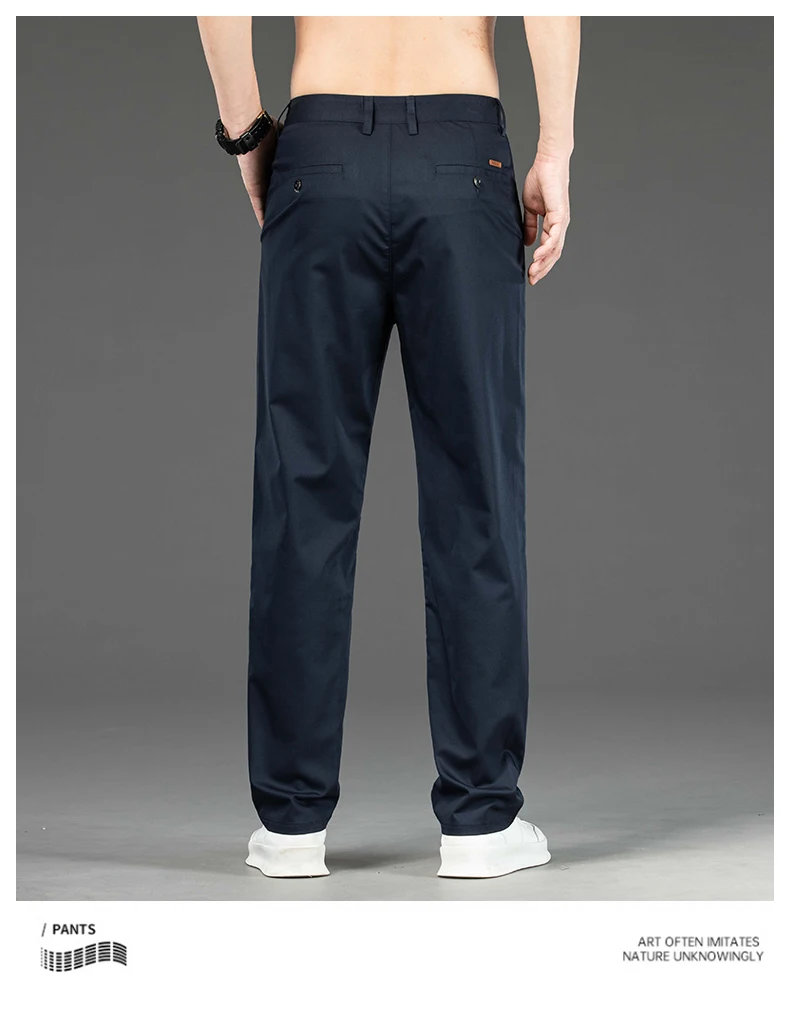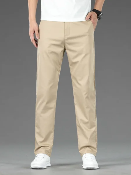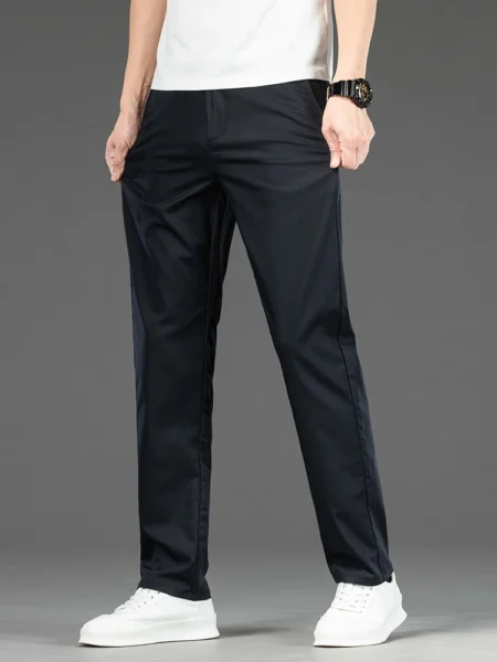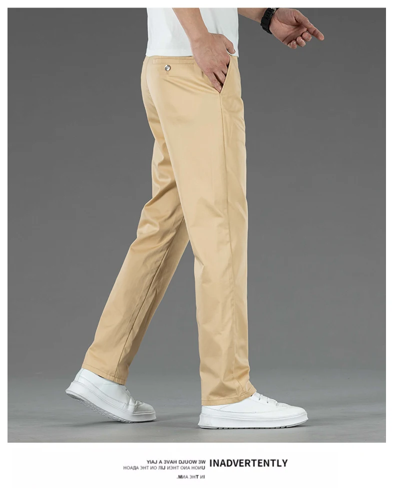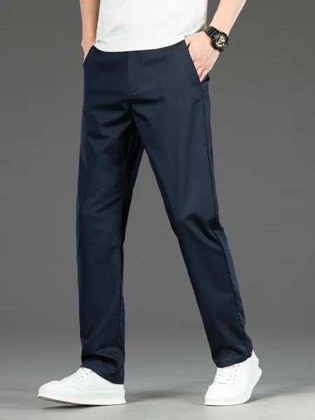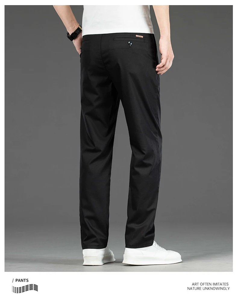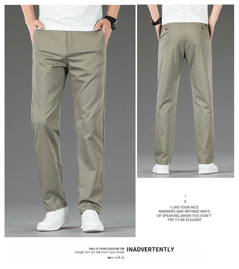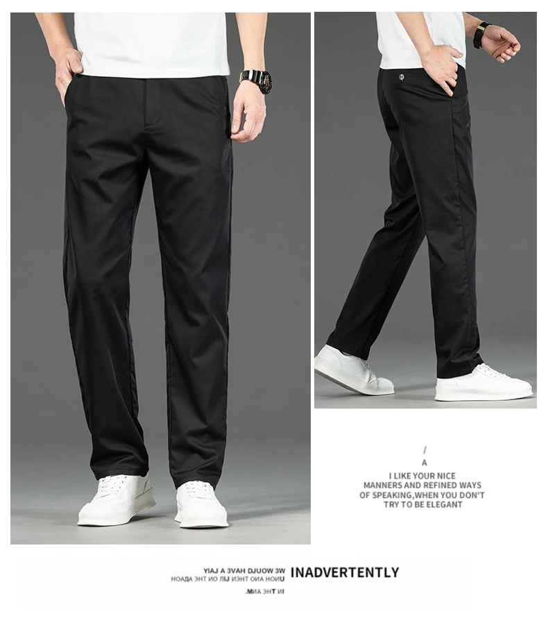 Spring Summer New Men’s Casual Pants Thin Mulberry Silk Soft Business Casual Trousers Slim Straight Elastic Suit Pants Male