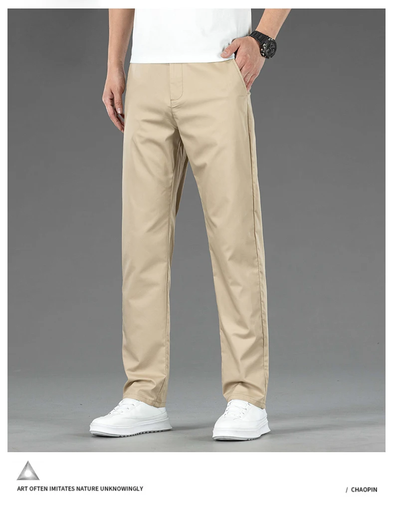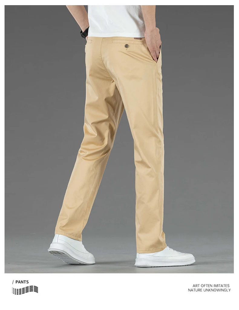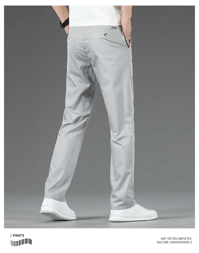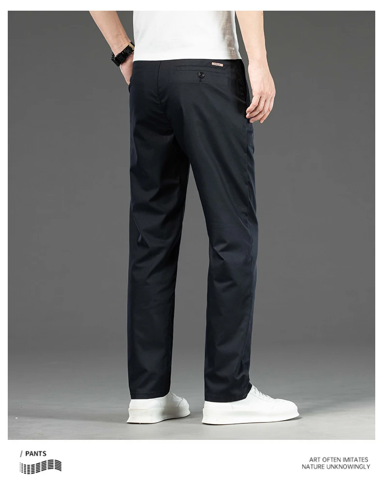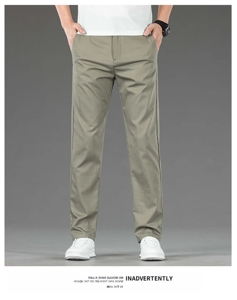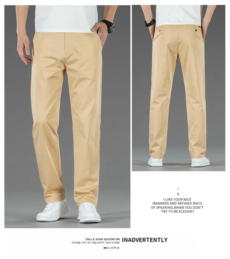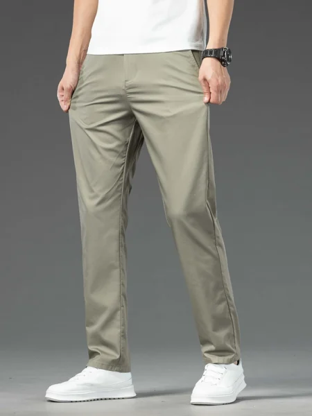 Spring Summer New Men’s Casual Pants Thin Mulberry Silk Soft Business Casual Trousers Slim Straight Elastic Suit Pants Male