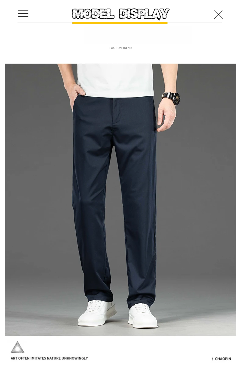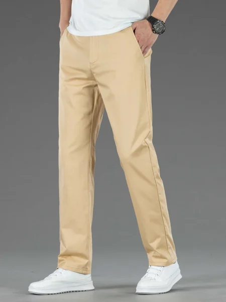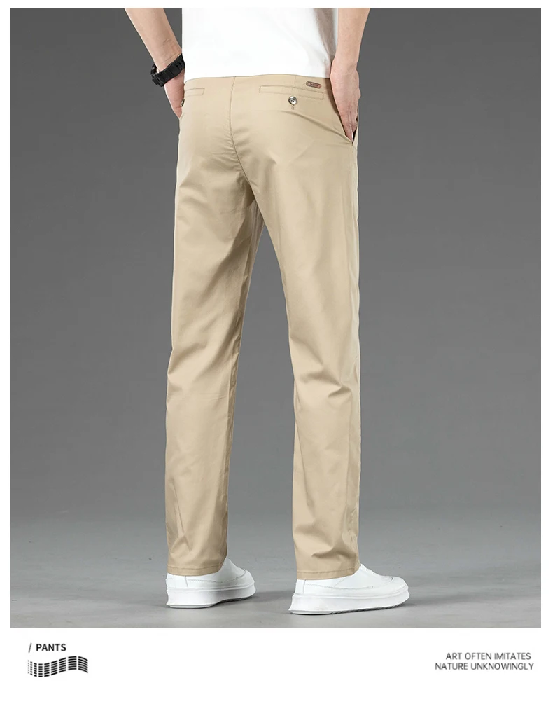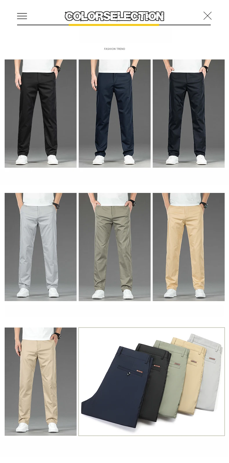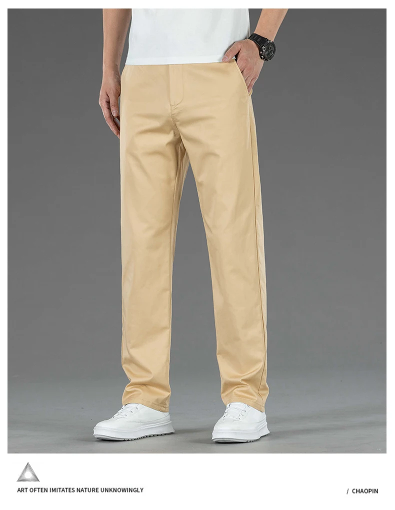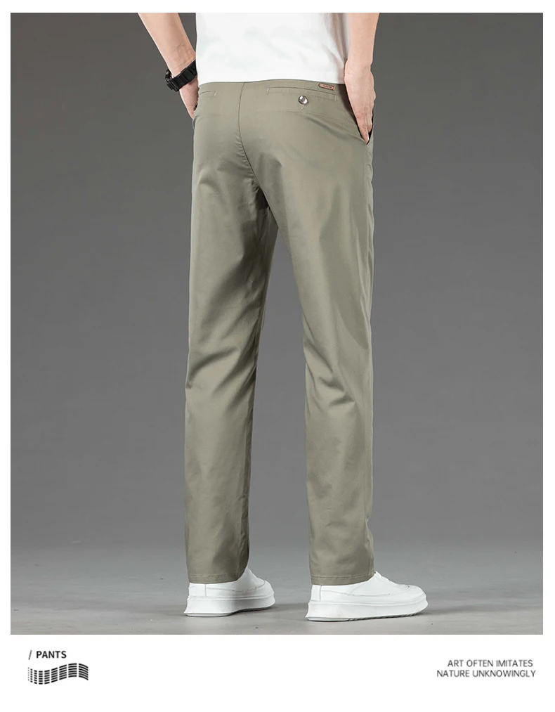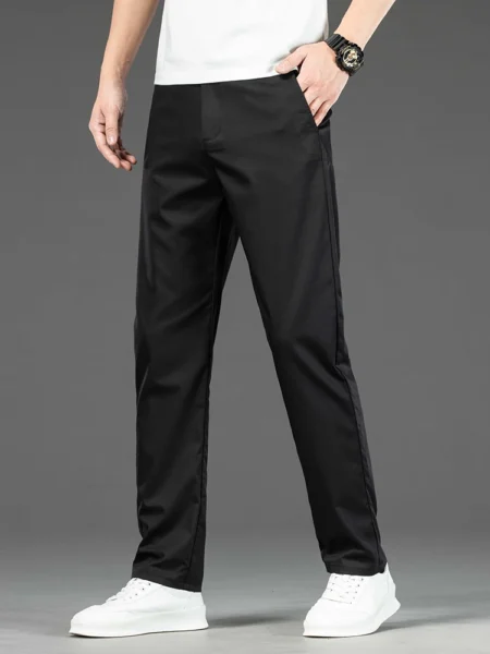 Spring Summer New Men’s Casual Pants Thin Mulberry Silk Soft Business Casual Trousers Slim Straight Elastic Suit Pants Male