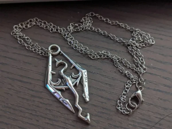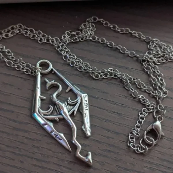 Vintage Dragon Viking Necklace, Gothic jewelry, Skyrim, games, Silver Pterosaurs, prismatic pendants, Dragon accessory, For Man